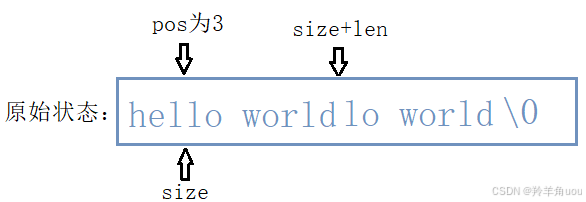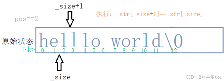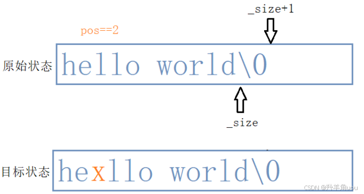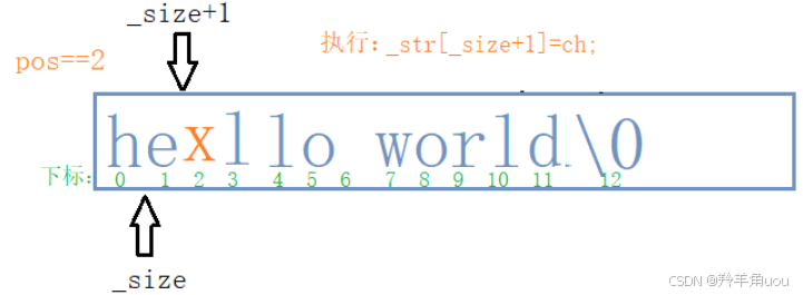 所以循环退出的条件是_size<pos。然后把_size+1的字符换成插入的x。
