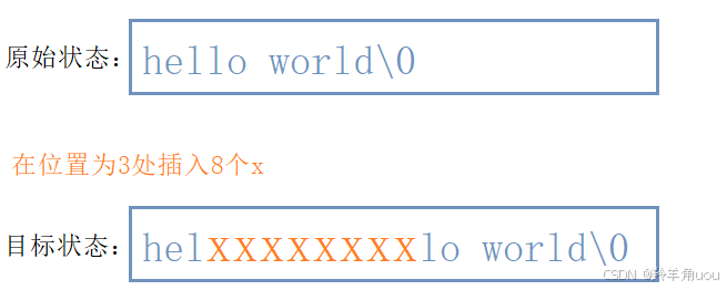 }新插入的x会把原来末尾的\0覆盖,所以我们要在新末尾加上\0。