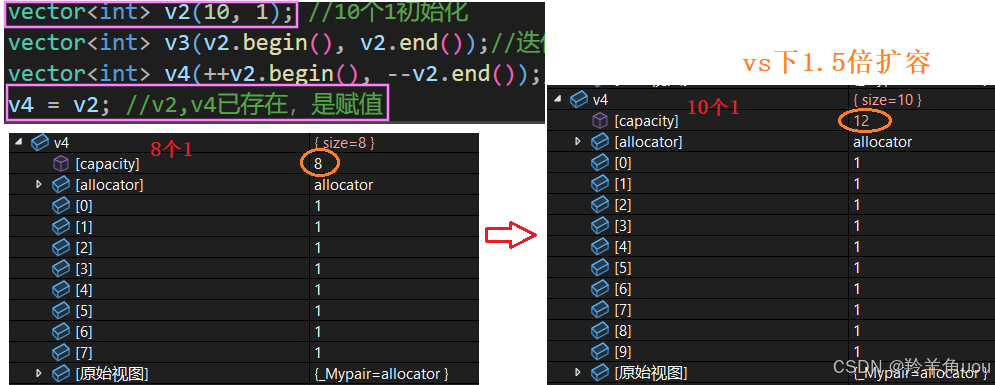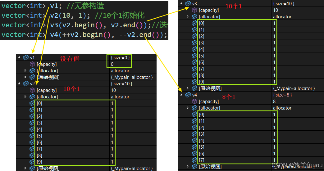 vector<int> v3(v2.begin(), v2.end());//迭代器区间初始化
