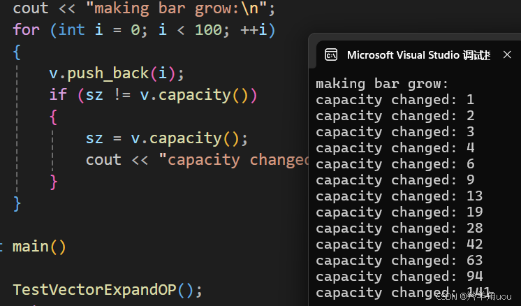 v.reserve(100); // 提前将容量设置好,可以避免一遍插入一遍扩容