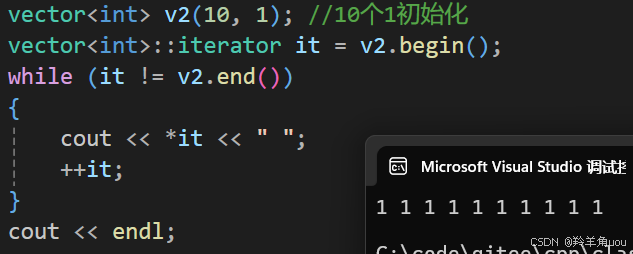 cout << endl;这里vector的迭代器要指定vector::类域,我们说string的迭代器的时候也是指定了string::类域。