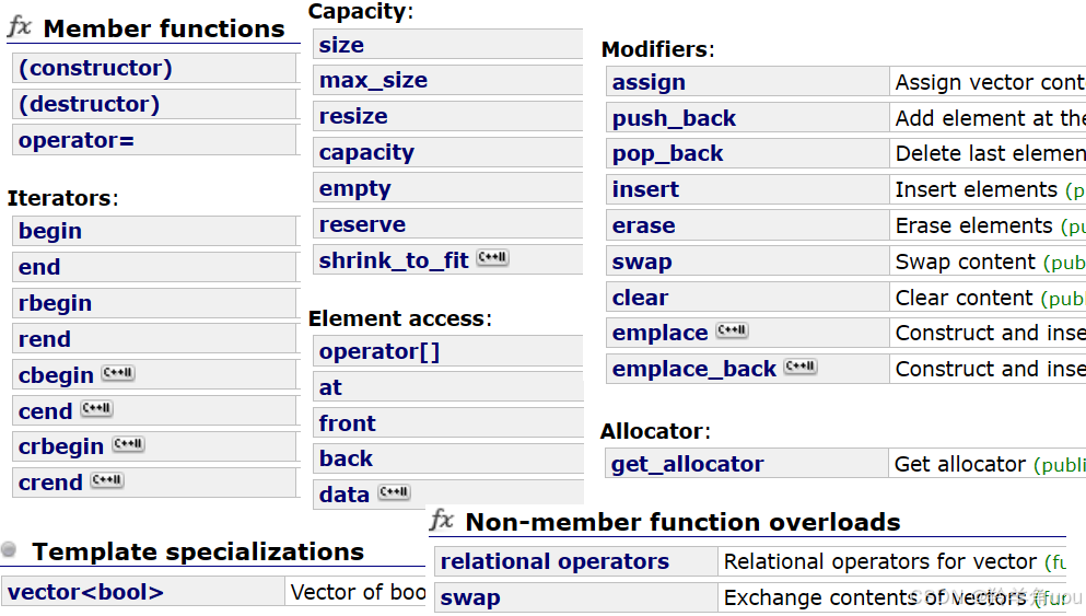 string因为一些发展历史的原因,设计的接口比较多,比较冗余,vector相对来说就好很多,接口比string少很多。我们还是重点说经常使用的接口。