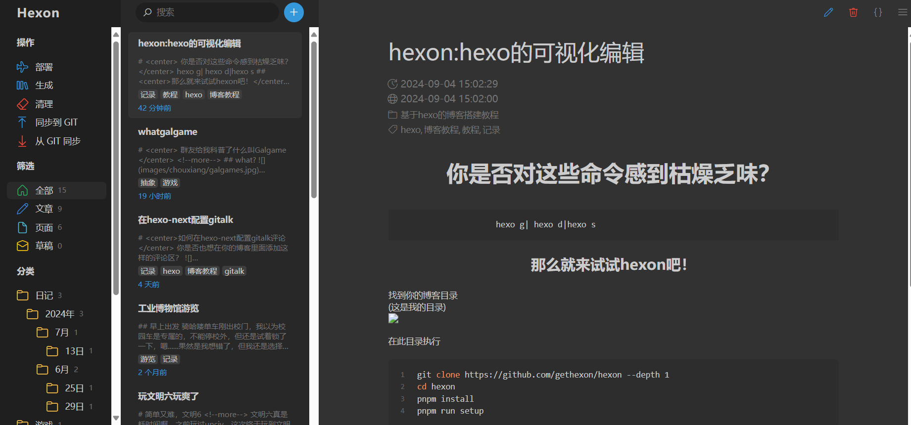 pnpm run setup此时你的博客目录下会出现hexon文件夹