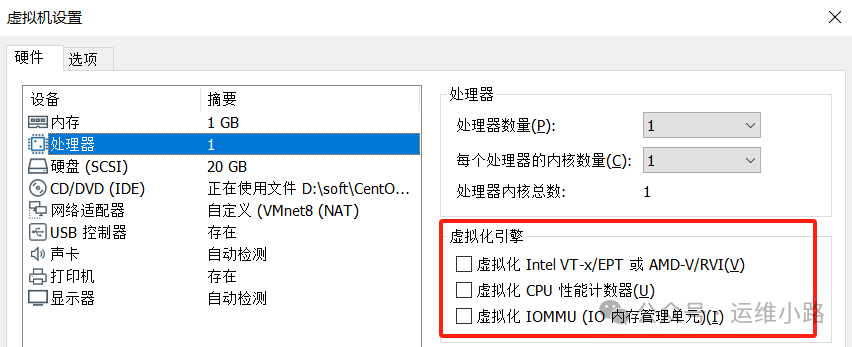 本次测试采用的我的迷你主安装的rocky9.4,如果是用Workstation操作还需要打开这个这个功能才支持硬件虚拟化(当然这里已经属于虚拟化嵌套了)。