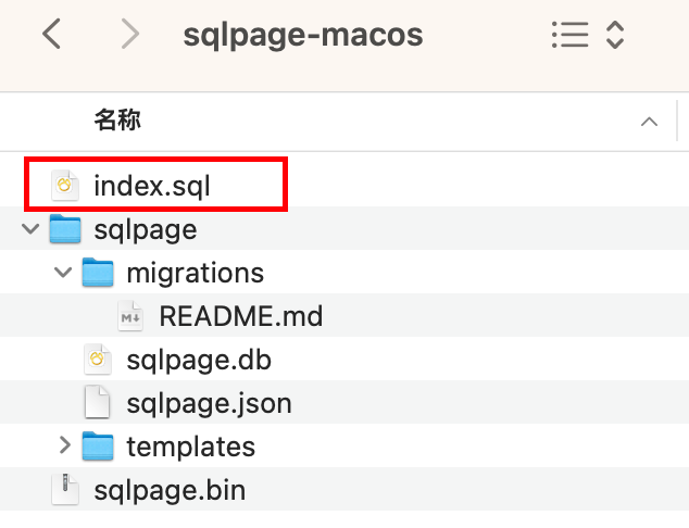 SQLPage 的部署非常简单,我们可以直接在项目的 release 页面下载对应平台的可执行文件,也可以通过 docker 来部署。这里以 macOS 为例,下载解压后,进入目录,执行目录下的 sqlpage.bin,可以看到程序已经启动了。