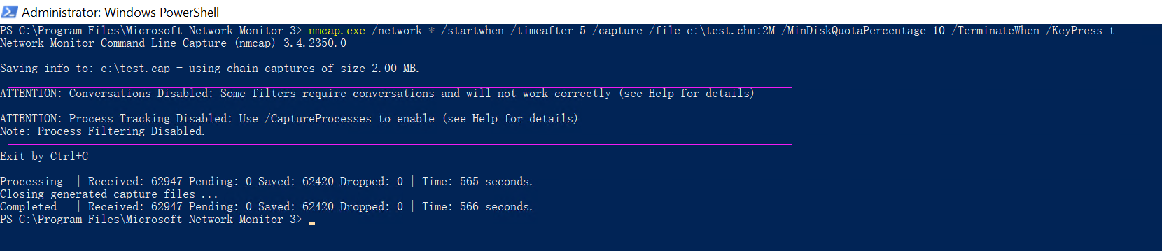 Disables conversations. This enhances the performance of NMCap. Some protocols such as MSRPC require conversation to be enabled.我试了不用/DisableConversations的话,只要是/file test.chn:xxxM长期抓包,默认就是用/DisableConversations,无需指定