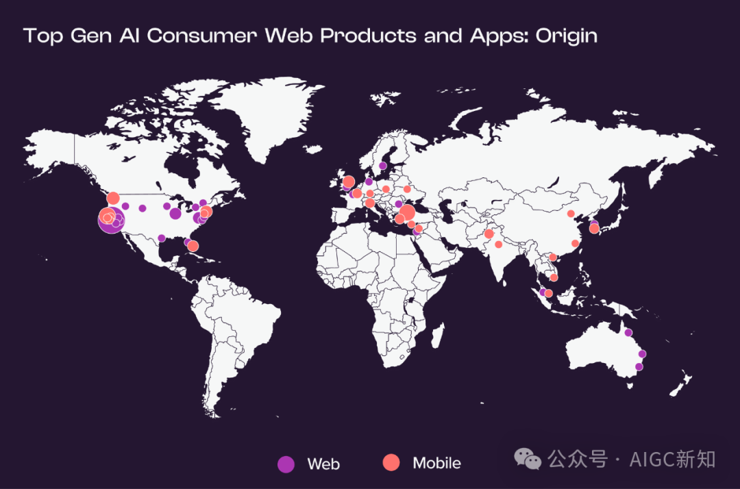 超过一半的顶级 AI Web 产品是在美国开发的,但只有不到三分之一的移动应用程序来自美国。