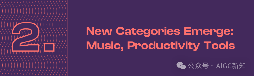 最新的产品分析中,两个新类别进入了眼帘:音乐和生产力(包括研究、编码协助和文档摘要等任务)。