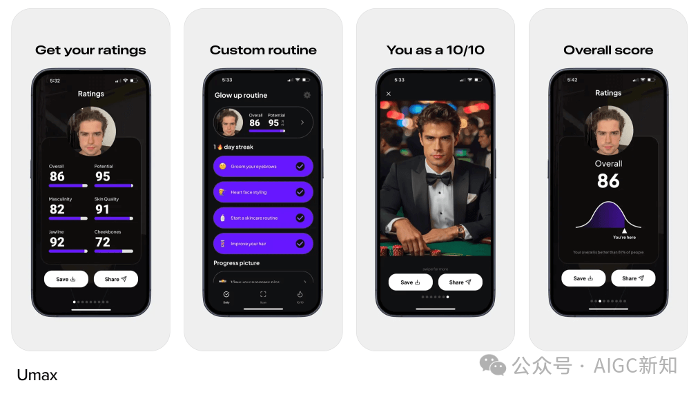 Umax 还生成用户 10/10 的图片,而 LooksMax 则分析用户的声音是否有吸引力。