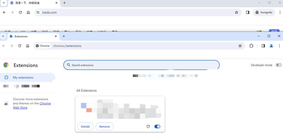 通过playwright启动chrome浏览器(有界面、带代理和指定扩展,操作慢),访问百度页面并等待插件加载,最后关闭浏览器。