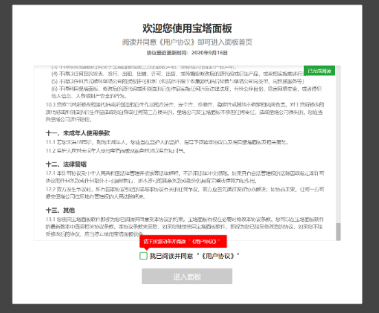 http://<公网IP>:8888,输入宝塔面板的登录账号和密码。