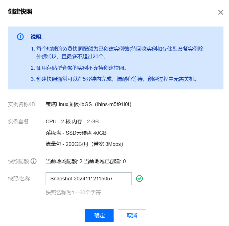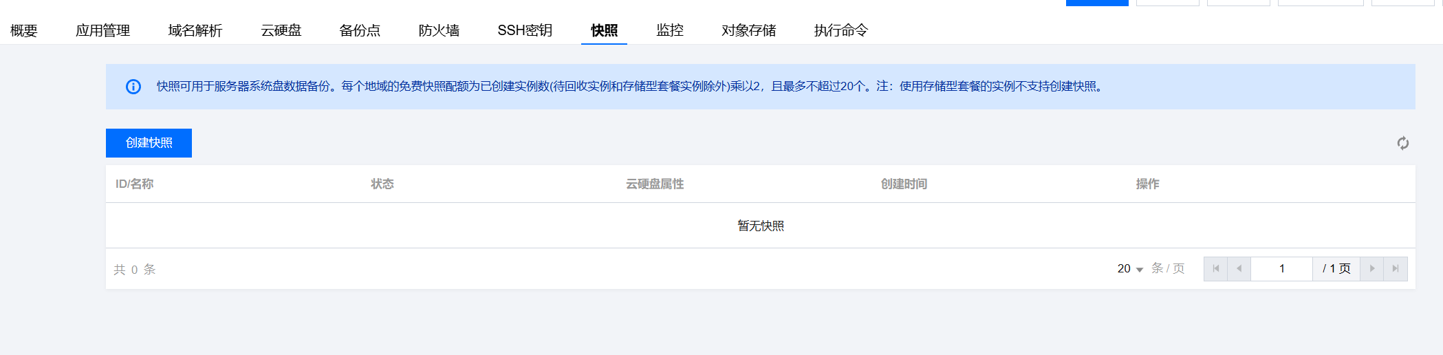 在“实例详情”页面的“快照管理”选项下,您可以点击“创建快照”按钮手动备份服务器当前的数据状态。手动创建的快照将记录服务器的磁盘状态,包括操作系统、已安装的软件和配置文件等。完成后可在快照列表中查看并下载这些备份文件。