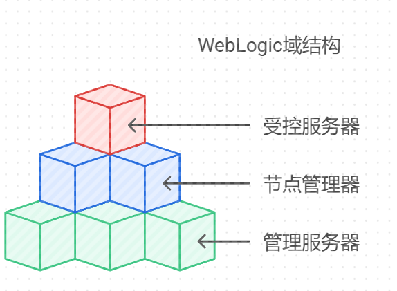 WebLogic Server的部署架构是以“域(Domain)”为中心的。一个域包含多个服务器实例,分为管理服务器和受控服务器。
