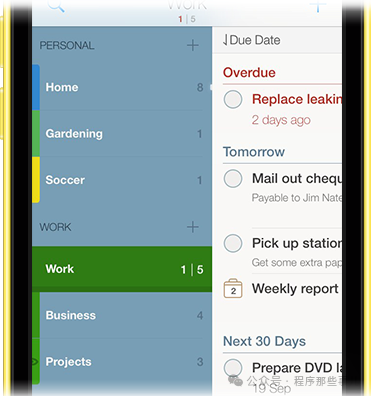 2Do 的列表功能允许用户将相关任务分组,并在每个列表上单独应用排序、搜索过滤器和聚焦过滤器。结合列表组,用户可以得到一个非常有序的任务管理系统。