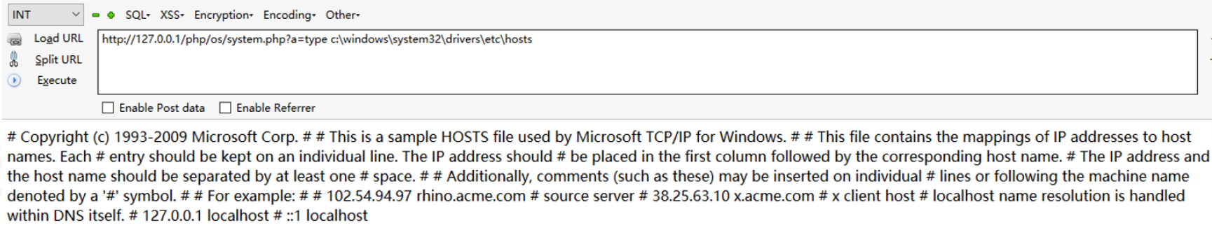 ?a=type c:\windows\system32\drivers\etc\hosts //查看文件