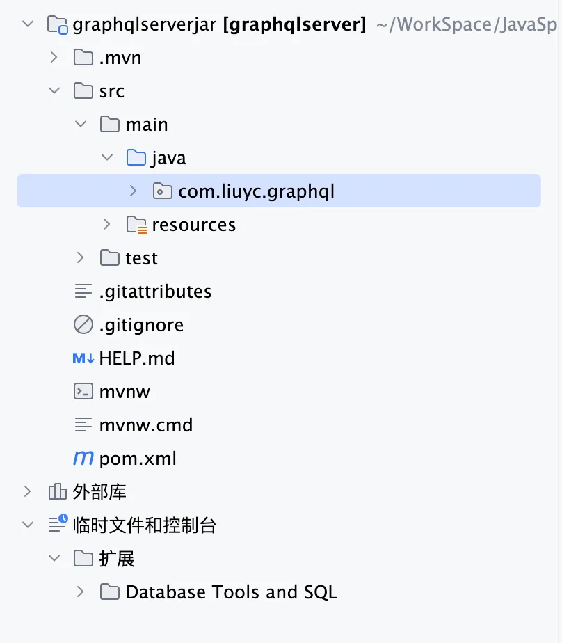 maven项目,在GraphQL中如果使用Github下载,默认为Gradle管理依赖库,我习惯maven,所以此处选择maven。Java。如果你熟悉Kotlin或Groovy,也可以选择他们。jar包项目,可直接运行访问。Spring for GraphQL 和 Spring Web依赖。将代码导入到项目中就是下面的结构。