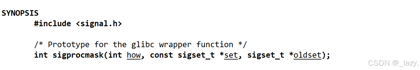 how:指定如何更改当前的信号屏蔽字。它可以是以下三个值之一: