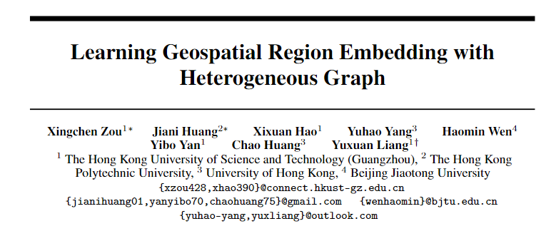 题目:Learning Geospatial Region Embedding with Heterogeneous Graph