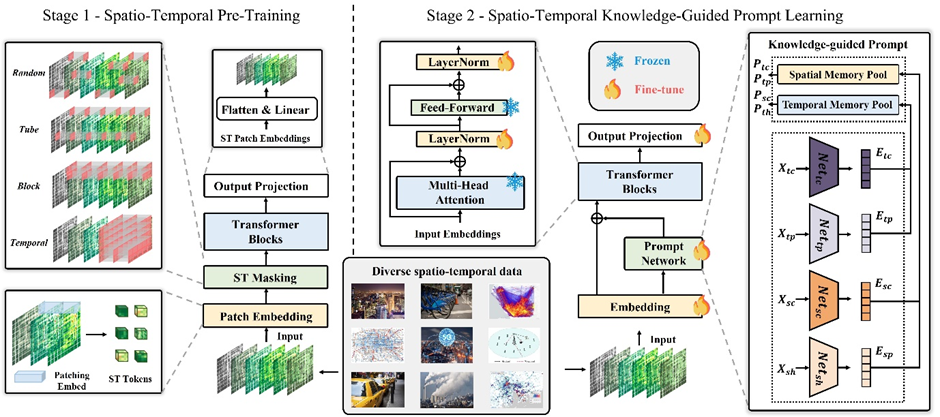UniST整体架构:时空预训练和知识引导的提示微调