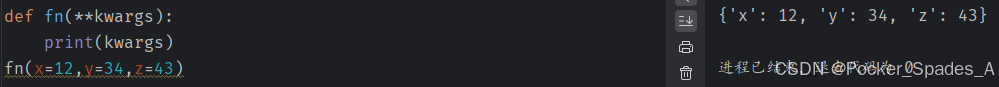 2.**kwargs 用来接受多个关键字参数,得到的是一个字典,且在传输参数的时候,必须是key=value的形式.
