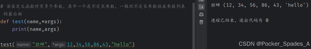 注意:若在定义函数时有多个参数,其中一个是不定长参数,一般把不定长参数放在参数列表的最后面.