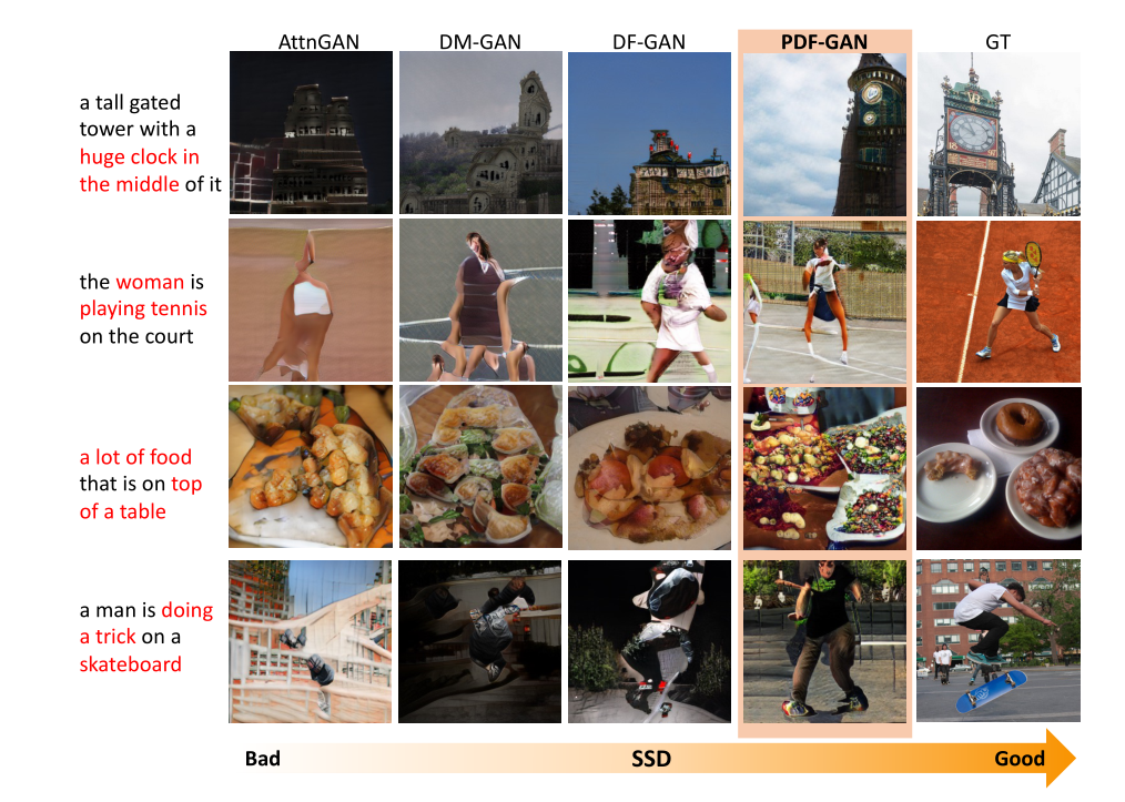 SSD,全称为Semantic Similarity Distance,是一种基于CLIP的新度量方式,是西交利物浦大学学者提出的一种新的文本生成图像度量指标,受益于所提出的度量,作者进一步设计了并行深度融合生成对抗网络(PDF-GAN),它可以融合不同粒度的语义信息并捕获准确的语义。文章22年10月在arcxiv发表。 论文地址:https://arxiv.org/abs/2210.15235