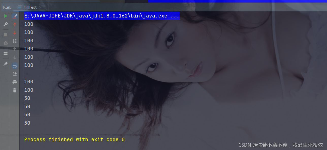以下实例我们通过 Java Util 类的 Arrays.fill(arrayname,value) 方法和Arrays.fill(arrayname ,starting index ,ending index ,value) 方法向数组中填充元素: