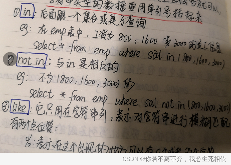 如果查询语句使用了not in,那么对内外表都进行全表扫描,没有用到索引;而not exists的子查询依然能用到表上的索引。所以无论哪个表大,用not exists都比not in 要快。