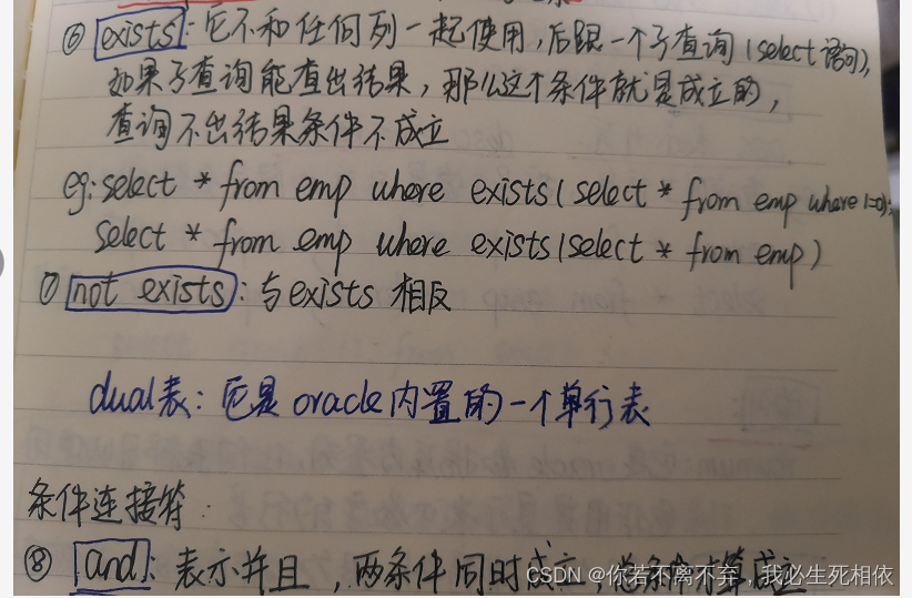 一种通俗的可以理解为:将外查询表的每一行,代入内查询作为检验,如果内查询返回的结果集非空,则exists子句返回true,这一行方可作为外查询的结果行,否则不能作为结果。