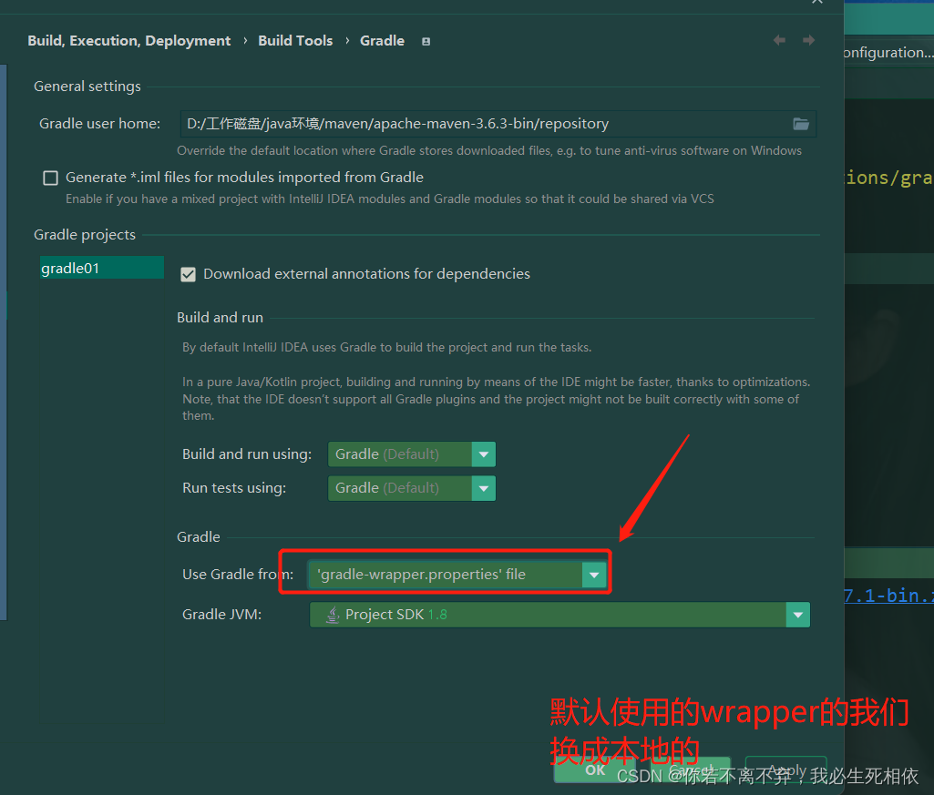 第二步:修改当前项目使用本地安装的gradle:可以加快下载项目依赖jar包的速度【配置了私服地址】。