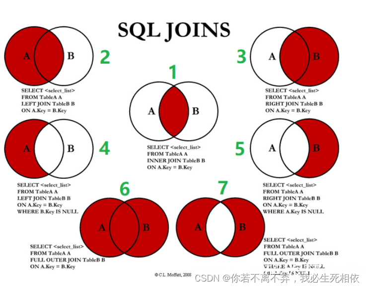 SELECT <select_list> FROM TableA A RIGHT JOIN TableB B ON A.Key = B.Key WHERE A.Key IS NULL;上图中第6个的实现 可以通过如下: