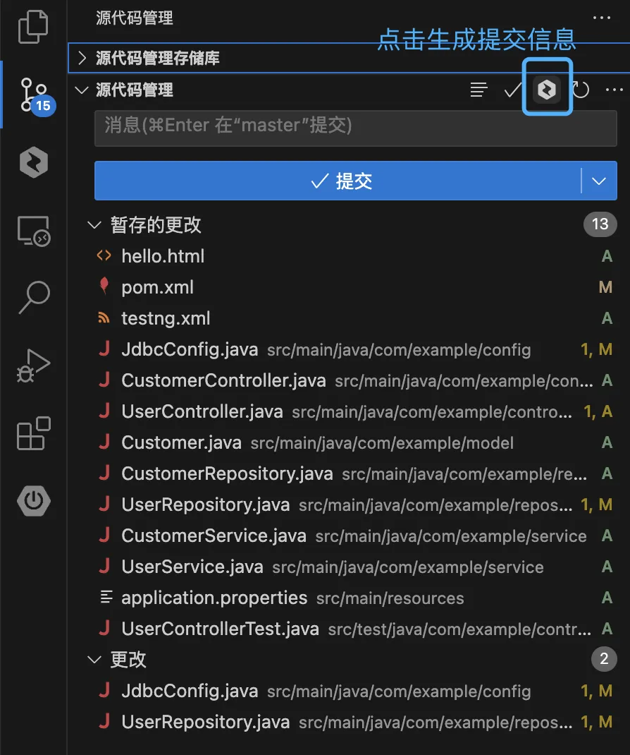 除 AICR ,代码助手还能够支持自动生成符合 Conventional 规范的 MR 提交信息。如图通过一键唤起 AI,AICR 可根据代码变更自动生成提交信息,确保 MR 提交信息的规范性和一致性,也节省大量时间。