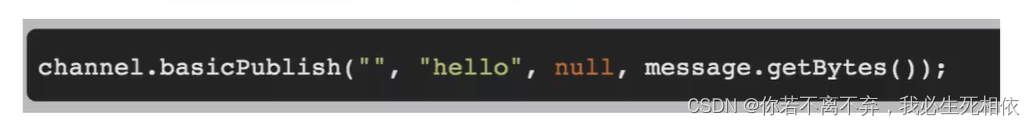 第一个参数是交换机的名称。空字符串表示默认或无名称交换机**:消息能路由发送到队列中其实是由 routingKey(bindingkey)绑定 key 指定的,如果它存在的话**