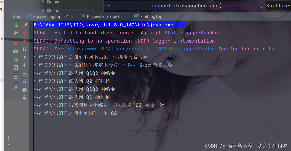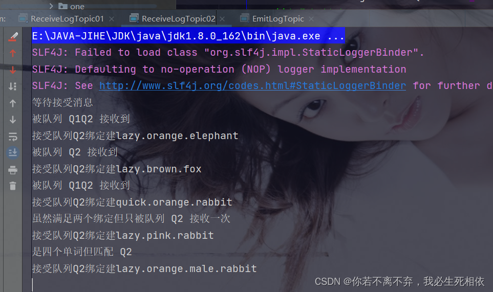 bindingKeyMap.put("lazy.orange.elephant","被队列 Q1Q2 接收到");