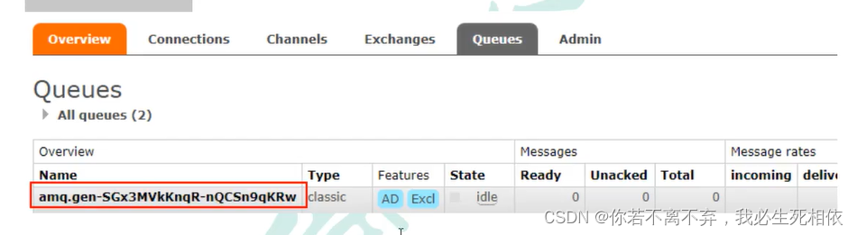 创建临时队列的方式如下: 创建临时队列的 名字 String queueName = channel.queueDeclare().getQueue();