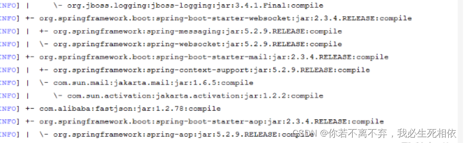 如果是使用 mvn dependency:tree 命令 , 结果是下图这样 很不方便查看