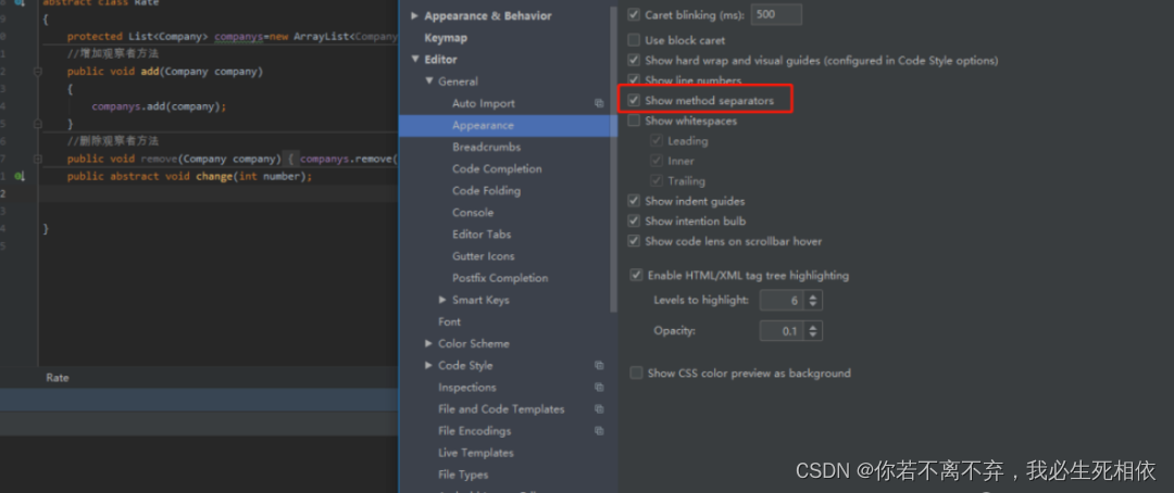ctrl+[ ctrl+] 可以快速跳转到方法大括号的起止位置,配合方法分隔符使用,不怕找不到方法在哪儿分割了
