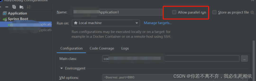 网上很多方法提到勾选 Allow parallel run (不同版本idea 名称不一样) ,我也亲眼见过有老师是可以多开启动的, 但我本地启动发现每次都会同时同端口启动多个,不知道是版本问题还是操作问题,这里我用的是另一种有效的方法: