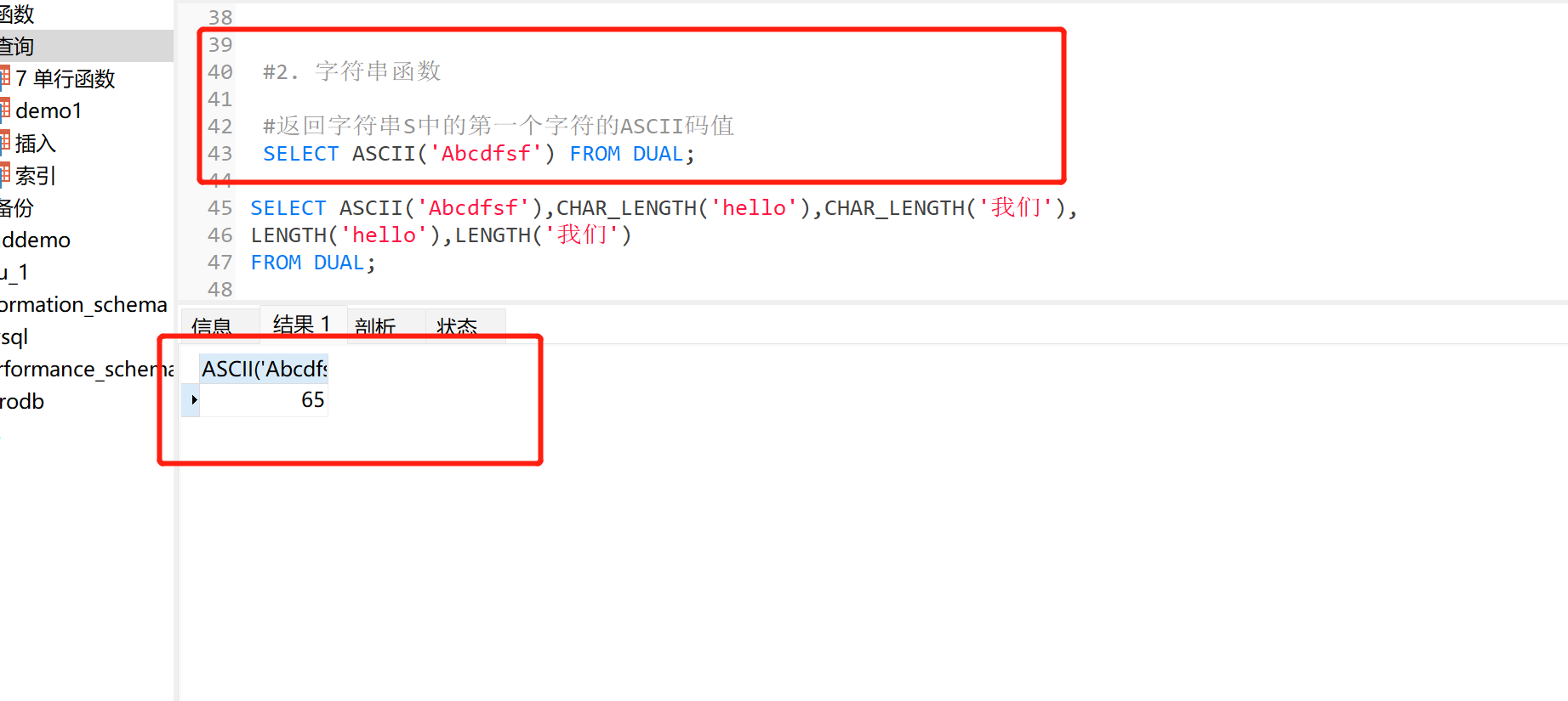 我们在使用 SQL 语言的时候,不是直接和这门语言打交道,而是通过它使用不同的数据库软件,即DBMS。DBMS 之间的差异性很大,远大于同一个语言不同版本之间的差异。实际上,只有很少的函数是被 DBMS 同时支持的。比如,大多数 DBMS 使用(||)或者(+)来做拼接符,而在 MySQL 中的字符串拼接函数为concat()。大部分 DBMS 会有自己特定的函数,这就意味着采用 SQL 函数的代码可移植性是很差的,因此在使用函数的时候需要特别注意。