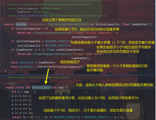 3、构造一个带指定初始容量和加载因子的空HashMap。
