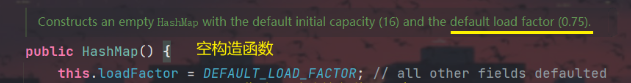 1、构造一个具有默认初始容量(16)和默认加载因子(0.75)的空HashMap。