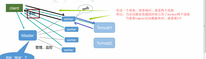 第一个:发送请求,占用了 woker 的几个连接数? 答案:2 (静态页面是2个)或者 4 个 查数据库是4 个