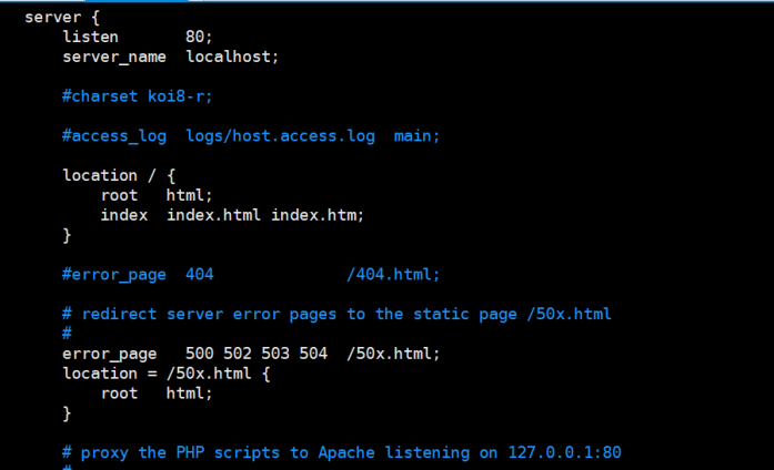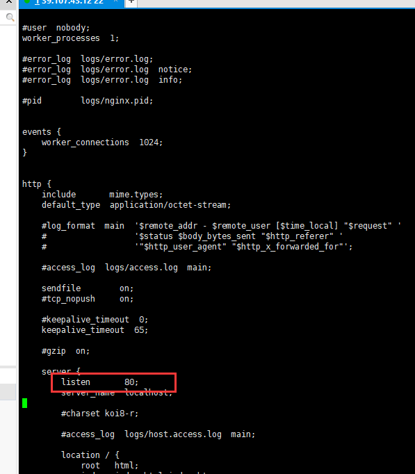 server中listen 是nginx 是监听的端口号 server_name localhost 名字
