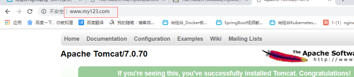 打开浏览器,在浏览器地址栏输入地址 www.123.com,跳转到 liunx 系统 tomcat 主页中