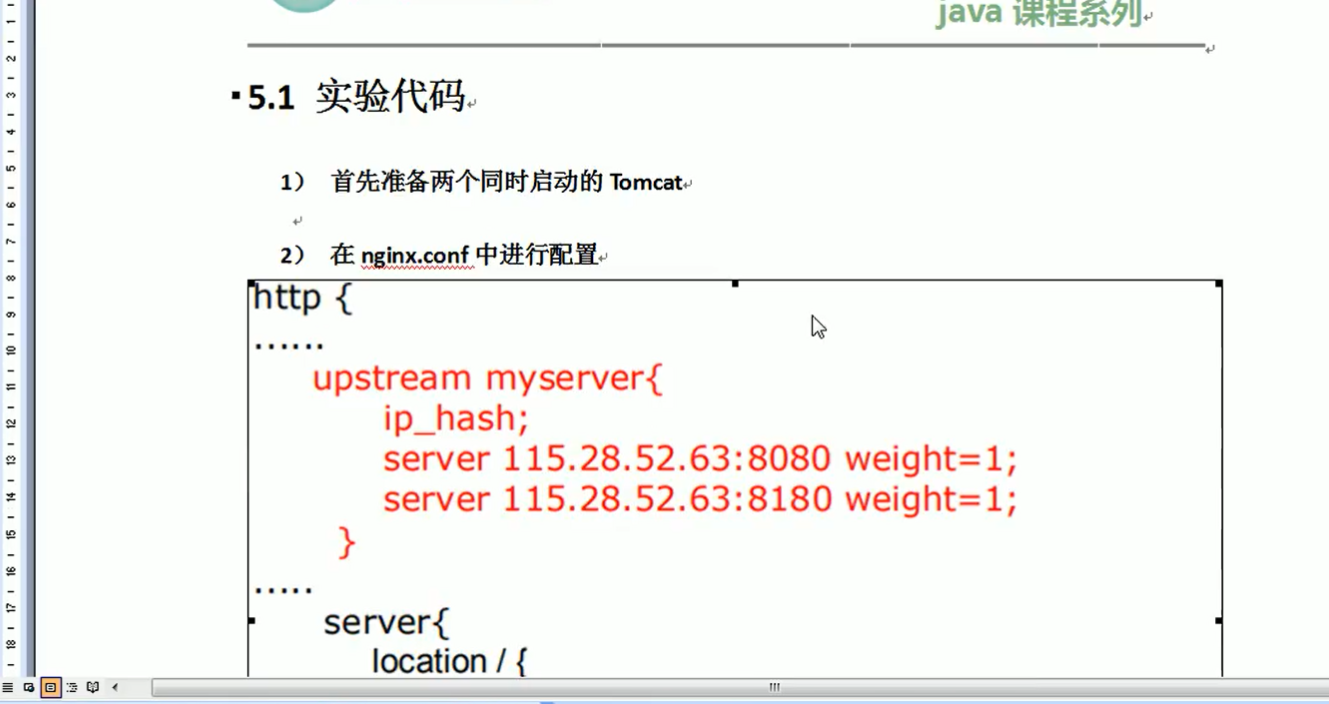 (1)准备两个 tomcat 服务器,一个 8080 端口,一个 8081 端口 (2)创建文件夹和测试页面