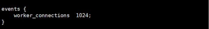 (2)events 块:影响 Nginx 服务器与用户的网络连接events 块涉及的指令主要影响 Nginx 服务器与用户的网络连接,常用的设置包括是否开启对多 work process下的网络连接进行序列化,是否允许同时接收多个网络连接,选取哪种事件驱动模型来处理连接请求,每个 wordprocess 可以同时支持的最大连接数等。 上述例子就表示每个 work process 支持的最大连接数为 1024. 这部分的配置对 Nginx 的性能影响较大,在实际中应该灵活配置。