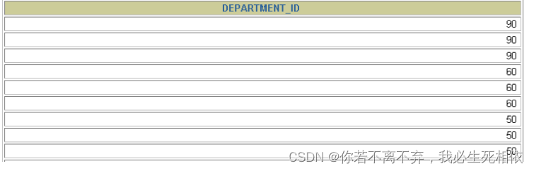 Field:表示字段名称。 Type:表示字段类型,这里 barcode、goodsname 是文本型的,price 是整数类型的。 Null:表示该列是否可以存储NULL值。 Key:表示该列是否已编制索引。PRI表示该列是表主键的一部分;UNI表示该列是 UNIQUE索引的一部分;MUL表示在列中某个给定值允许出现多次。 Default:表示该列是否有默认值,如果有,那么值是多少。 Extra:表示可以获取的与给定列有关的附加信息,例如AUTO_INCREMENT等。 SELECT ‘尚硅谷’ as corporation, last_name FROM employees;