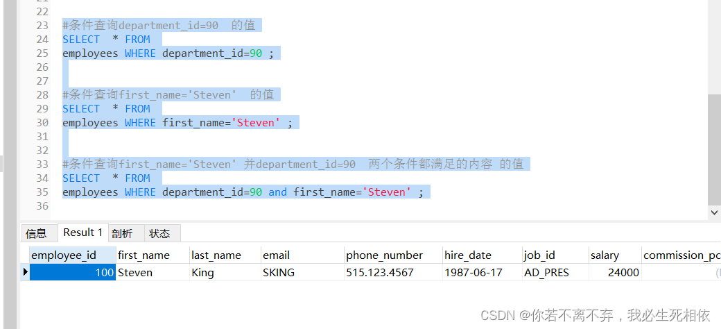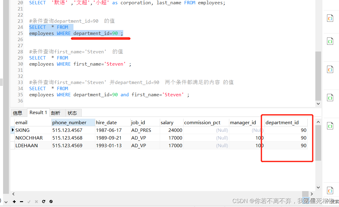 #条件查询first_name='Steven' 并department_id=90 两个条件都满足的内容 的值