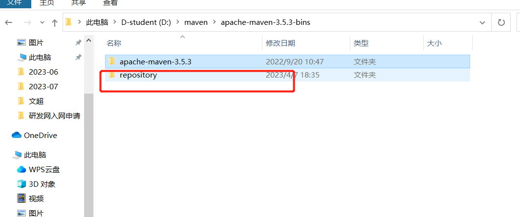 建议配置一下,在前面的 /maven 文件夹下再新建一个文件夹 repository , 用作本地仓库路径: