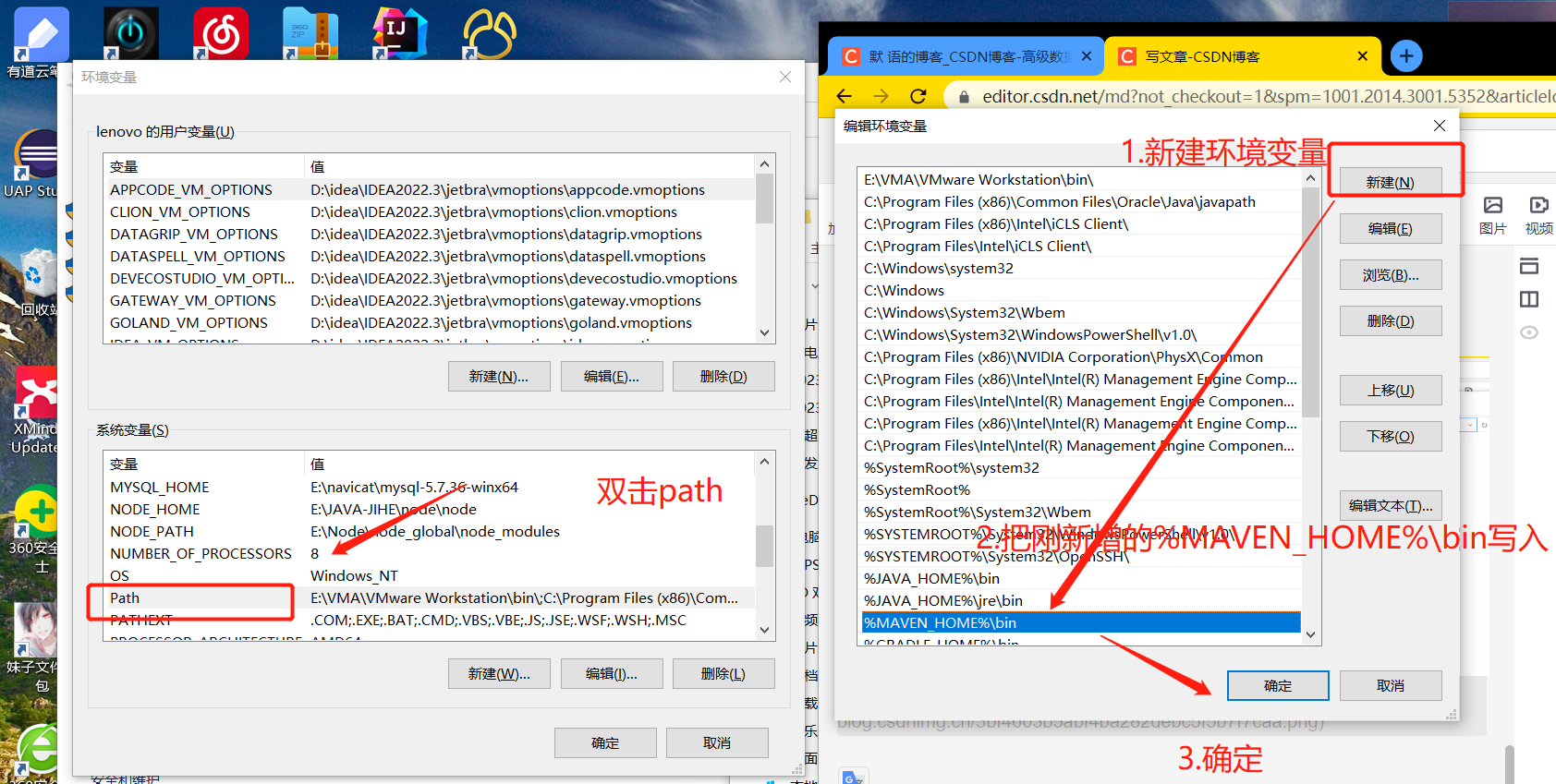进入path 中新建写入 %MAVEN_HOME%\bin, 确定保存即可